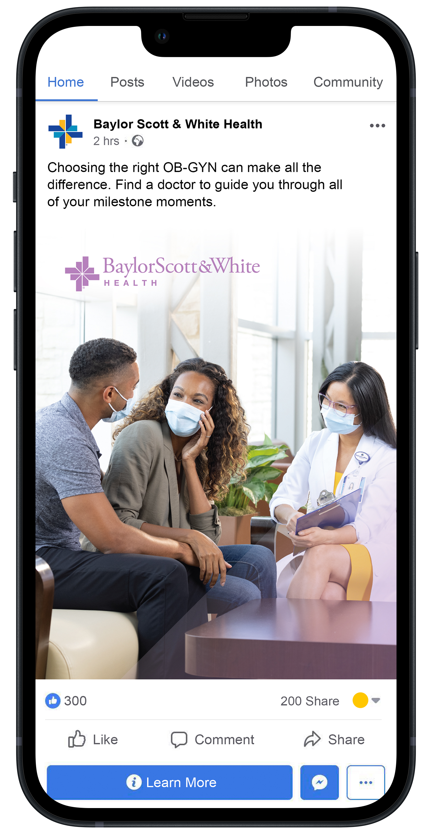 We created social media ads to help families choose the right OB-GYN and share information to prepare families for their new chapter in life.